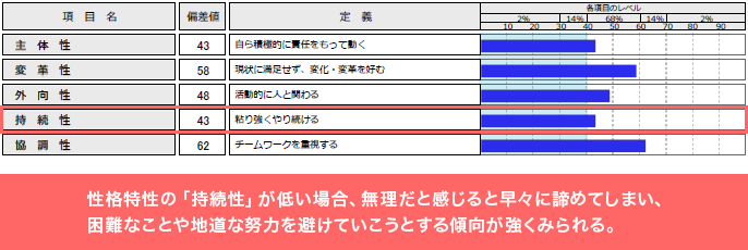- ● 性格特性の「持続性」が低い