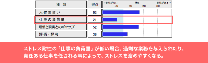 - ● ストレス耐性の「仕事の負荷量」が低い