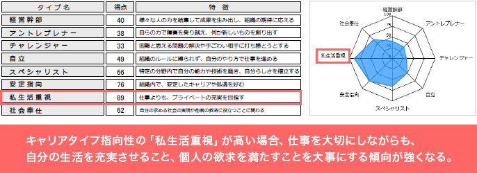 - ● キャリアタイプ指向性の「私生活重視」が高い