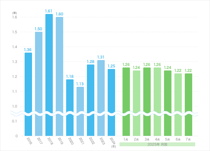 有効求人倍率(パートタイムを含む一般)/2025年の月別の数値は季節調整値